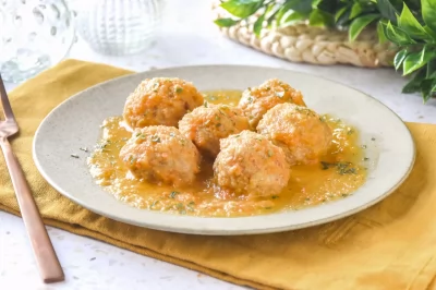 Con esta receta, vamos a preparar unas albóndigas de pollo muy jugosas. Para ello, vamos a mezclar el pollo picado con pan remojado en leche, así…