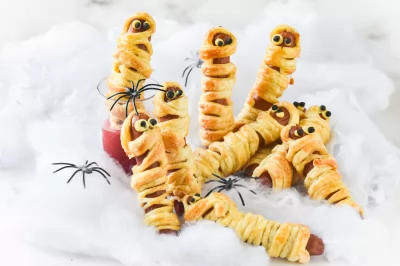 Para preparar las momias de salchicha de Halloween hemos utilizado láminas pequeñas de masa de hojaldre, pero podríais utilizar perfectamente una…