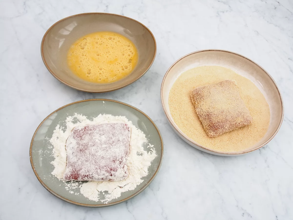 El empanado no es una técnica complicada. De hecho, se trata de una preparación bastante simple y socorrida. Para realizar un empanado de forma fácil y ordenada, es necesario disponer previamente los ingredientes en tres platos hondos: uno con harina, a poder ser, previamente tamizada; otro con huevo batido lo más homogéneamente posible, sin grumos ni espuma; y finalmente un último plato con pan rallado.