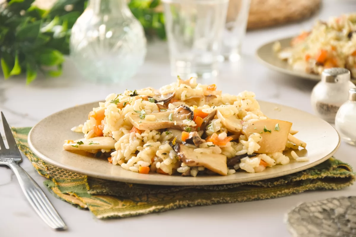 Servimos el arroz con boletus inmediatamente para disfrutarlo recién hecho.