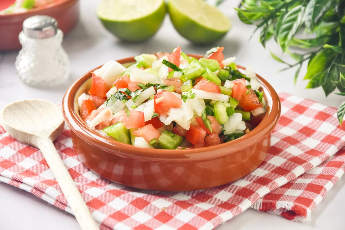 Para elaborarlo, podemos optar por cebolla blanca o roja, según preferencias. El tomate os recomendamos que sea bien carnoso y en su punto óptimo sin que llegue a estar demasiado maduro. De este, desecharemos las semillas para cortar su pulpa a daditos. En cuanto al pimiento verde, podemos optar por uno morrón o uno italiano, según disponibilidad. Del cilantro, en esta ocasión, vamos a aprovechar tallo y hojas, ya que nos aportarán distintas texturas y un sabor refrescante.