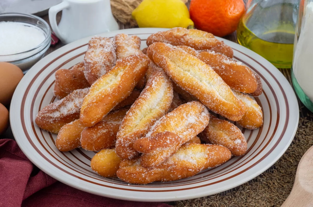 Humildes en ingredientes y de presentación sencilla, los huesillos son bocados de masa frita aromatizada con anís y cítricos. Se terminan con el rebozado de azúcar tan propio de este tipo de elaboraciones y no veas con qué aroma tan delicioso te va a dejar en la cocina.