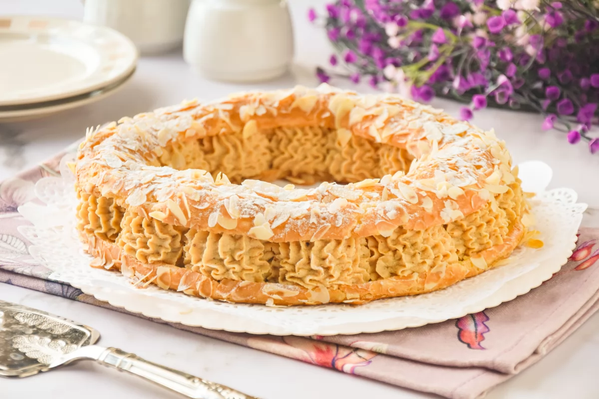 El París-Brest es un dulce francés con forma de corona —o más bien, con forma de rueda de bicicleta— ya que se creó para conmemorar la carrera ciclista París-Brest-París que consistía en un recorrido de ida y vuelta entre estas dos ciudades. Su origen se remonta al año 1910, cuando el pastelero francés Louis Durant ideó este postre para plasmar gastronómicamente el espíritu de esta famosa competición.