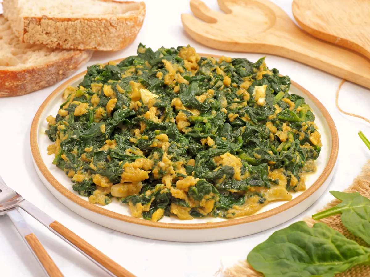 - Servimos el revuelto de espinacas recién hecho