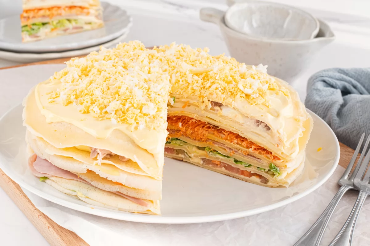 Los rellenos más populares de la torre de panqueques son la mayonesa en cantidad generosa, la zanahoria rallada, el jamón cocido, la lechuga, el atún, el huevo duro… Aunque estos son los rellenos más típicos y normalmente presentes en esta elaboración, también podemos optar por otros rellenos a nuestro gusto añadiendo, por ejemplo, tomate, queso, verduras asadas, salmón ahumado, pollo asado desmenuzado…