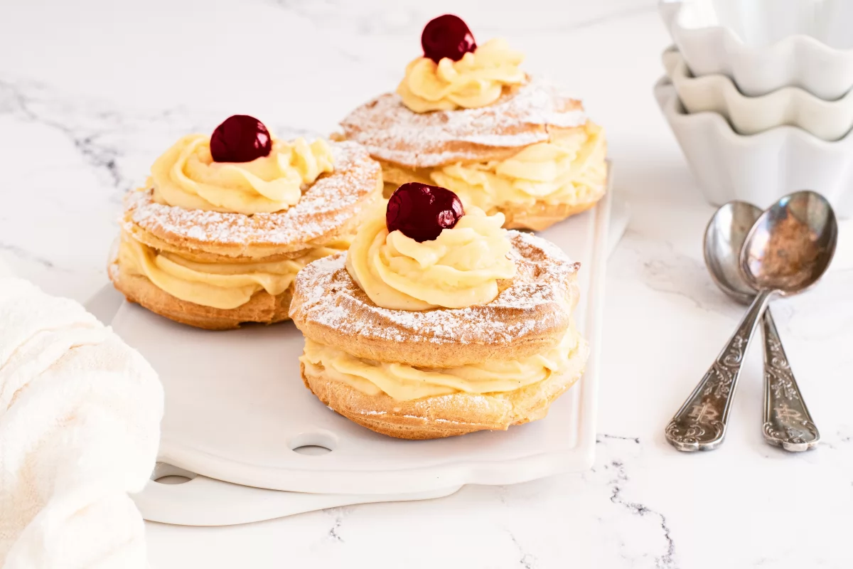 Este dulce italiano conocido con el nombre de zeppole tiene su origen en Nápoles, aunque con el tiempo, se ha extendido a todo el país y hoy en día, su consumo tradicional en torno a la festividad de San Giuseppe está muy arraigado. Se trata de unos pastelitos elaborados con masa choux, rellenos de crema pastelera y decorados con cerezas amarenas en almíbar. Se preparan especialmente el 19 de marzo, día de San José y Día del Padre en Italia, lo que les da el nombre por el que son más popularmente conocidos: Zeppole di San Giuseppe.